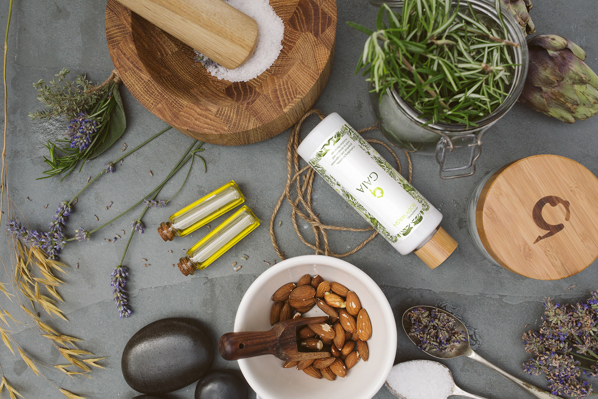 Campaign and advertising product imagery for Gaia Skincare.